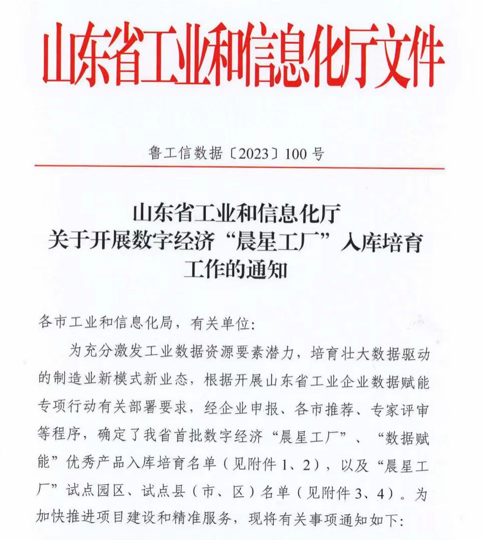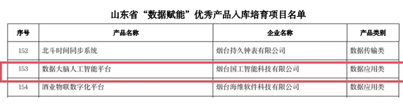 喜訊!國工智能入選山東省“數據賦能”優秀產品入庫培育項目名單