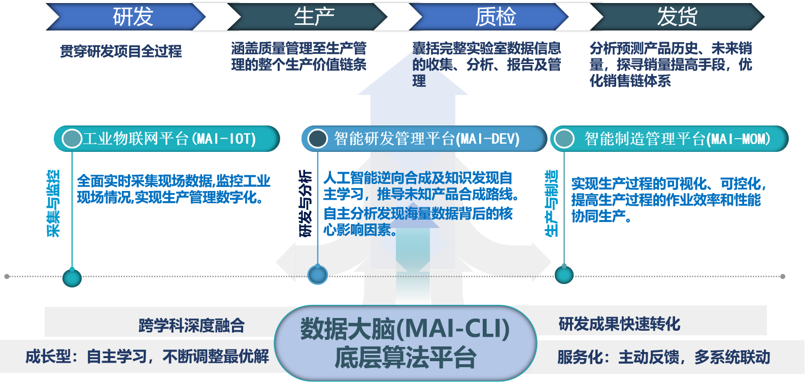 國工數據大腦人工智能平臺是定位于為流程工業企業提供一套基于人工智能自主分析去發現數據價值的平臺,底層技術深度自研、自主可控,覆蓋從研發到生產的橫向業務流程,貫穿從應用軟件到智能硬件的縱向產品鏈路。系統實現了對分散的數據進行調度,實現多源數據整合,快速構建數據倉庫,同時具備完備的數據清洗功能,準確定位異常數據,完成數據過濾,提供多種機器學習算法組件,快速完成對歷史數據的增量/批量學習,基于機器學習成果,實現配方學習、質量分析、銷售預測等等業務應用,幫助企業優化生產關鍵因素、安排生產與庫存計劃、制定銷售策略等提供分析和決策支持,實現數據的價值轉換,從而成為企業的智能大腦。