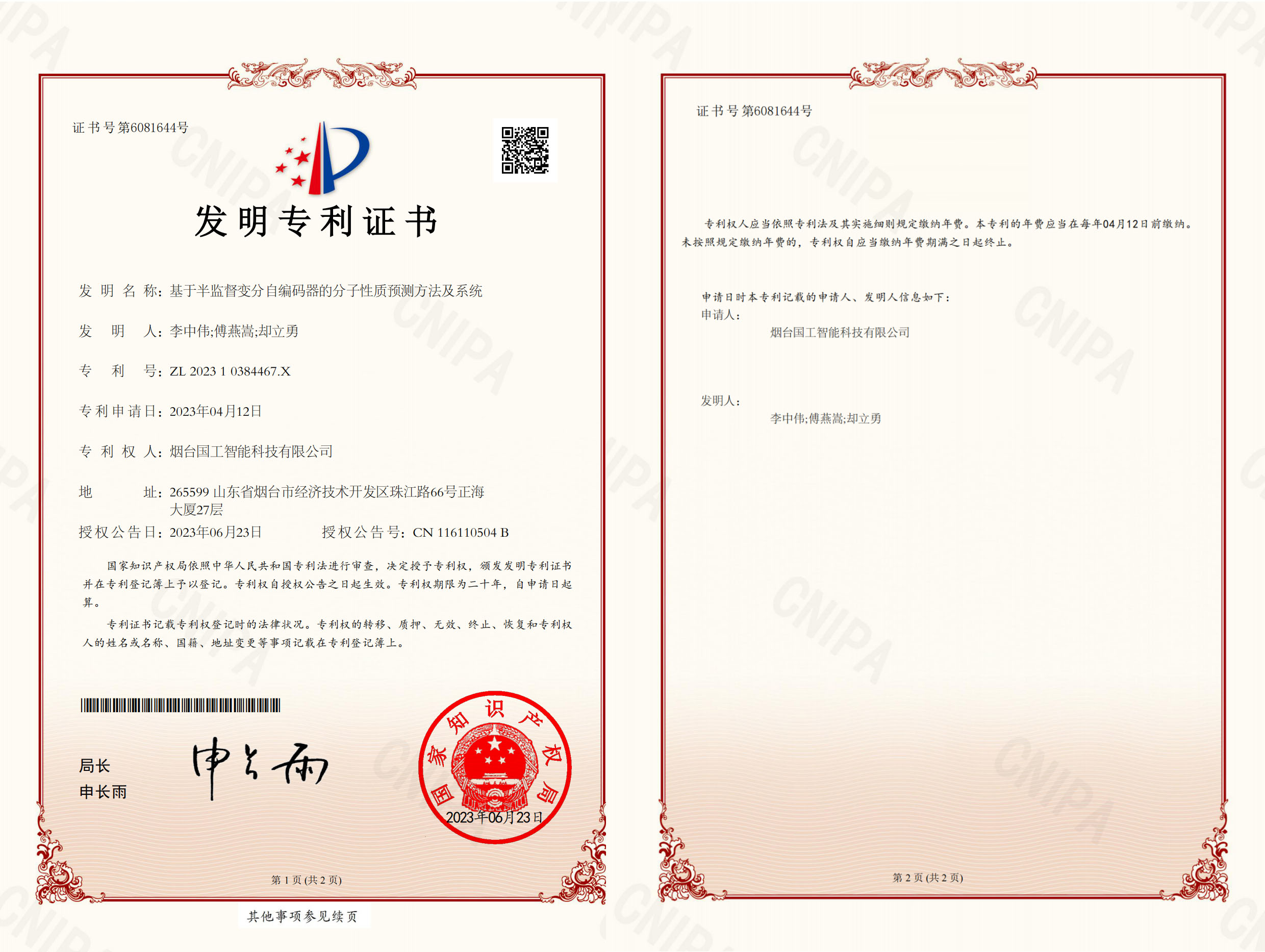 近日,國工智能新添國家知識產權局頒發的一項發明專利證書“ 基于半監督變分自編碼器的分子性質預測方法及系統”,這有力體現了國工在人工智能技術領域的核心競爭力。