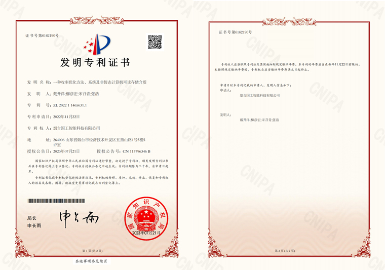 近日,國工智能新添國家知識(shí)產(chǎn)權(quán)局頒發(fā)的一項(xiàng)發(fā)明專利證書“ 一種收率優(yōu)化方法、系統(tǒng)及非暫態(tài)計(jì)算機(jī)可讀存儲(chǔ)介質(zhì)”。