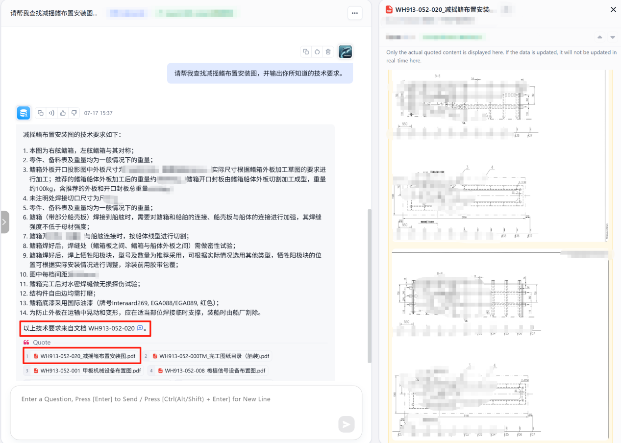 海事行業專屬大模型應用智舟大模型基于前言的大模型技術,專為海事行業設計,提供全面的問答支持。無論是管理公司策略、海事法規解讀、船舶管理體系解析、文書編寫助手,還是船舶操作說明和技術圖紙咨詢,我們的系統都能快速準確地提供所需信息。